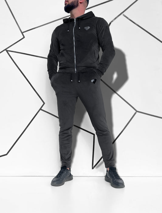 Vyriškas veliūrinis juodas laisvalaikio kostiumas 'Lovardete'