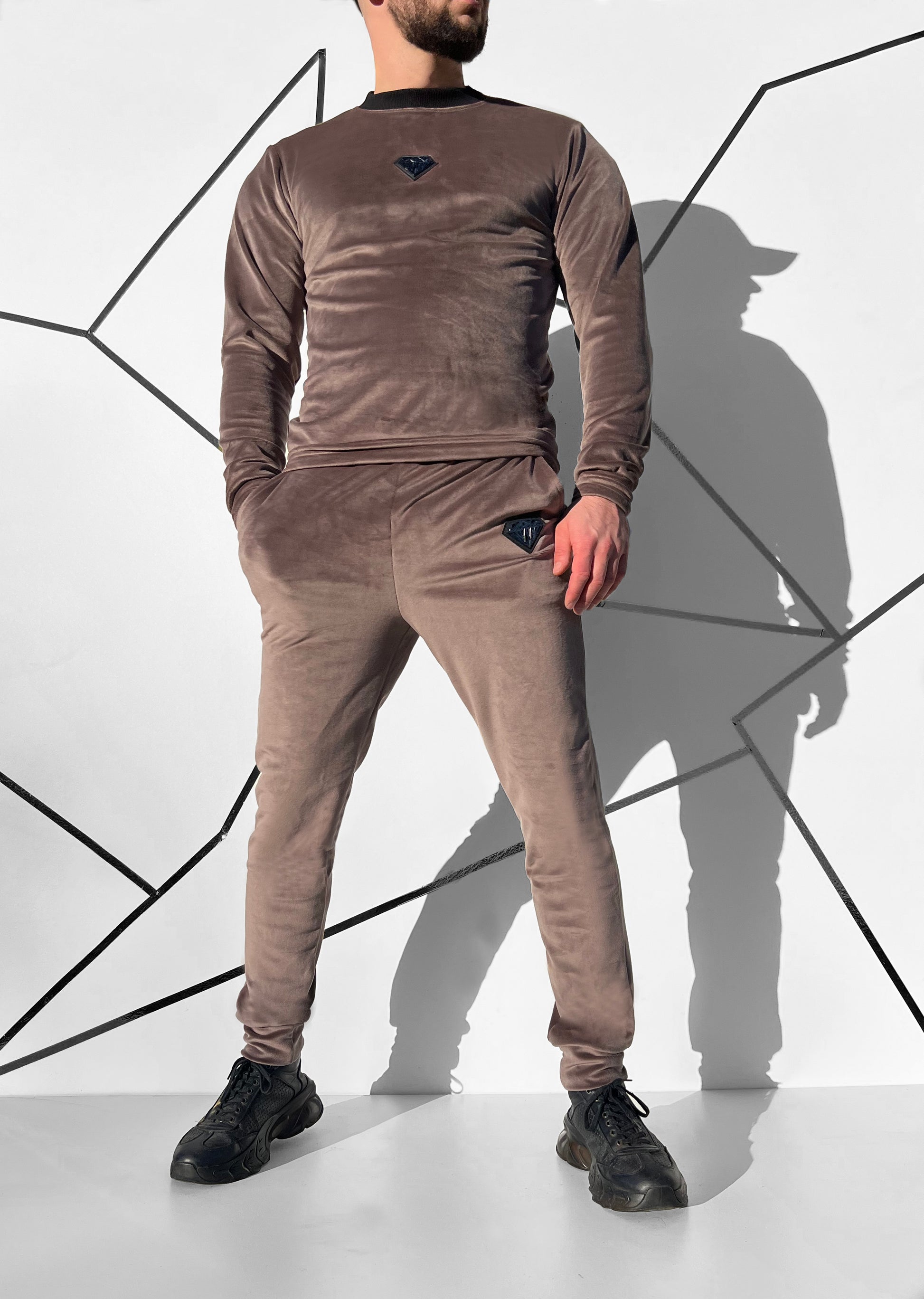 Kakavinis veliūrinis vyriškas laisvalaikio kostiumas 'Bodveto