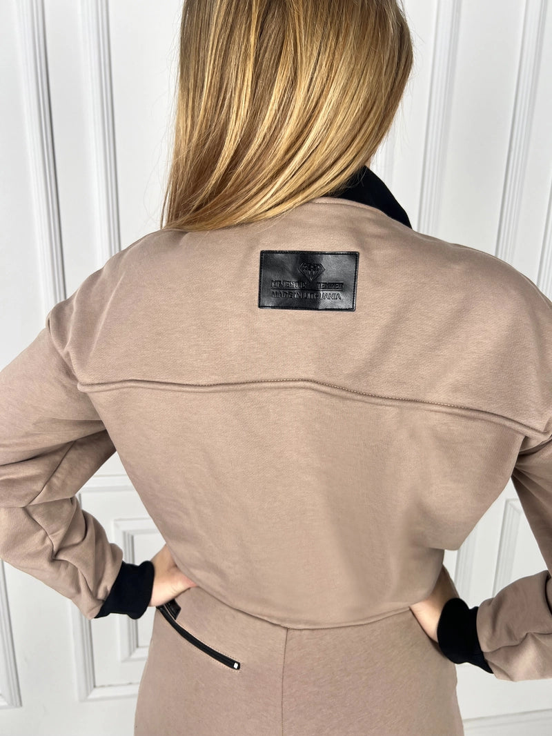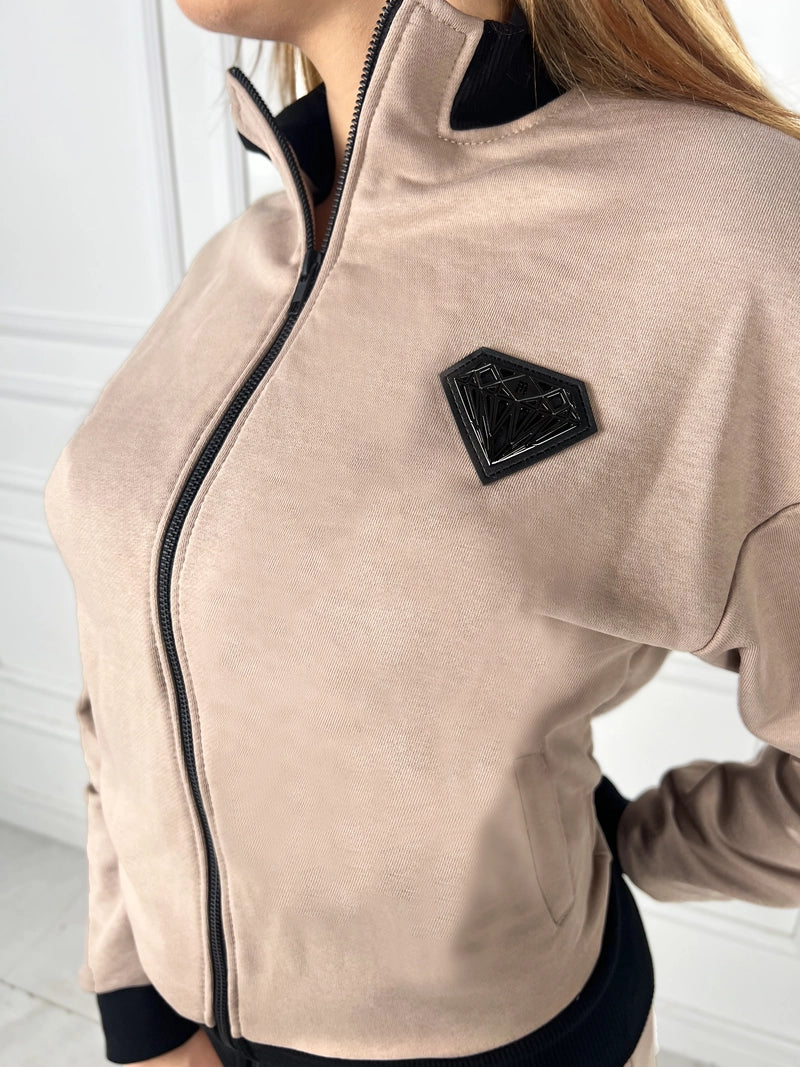 Kokybiškas medvilninis audinys, juodas YKK užtrauktukas, kišenės džemperio bei kelnių priekinėje pusėje, galinė kišenė su užtrauktuku kelnių nugarinėje pusėje.