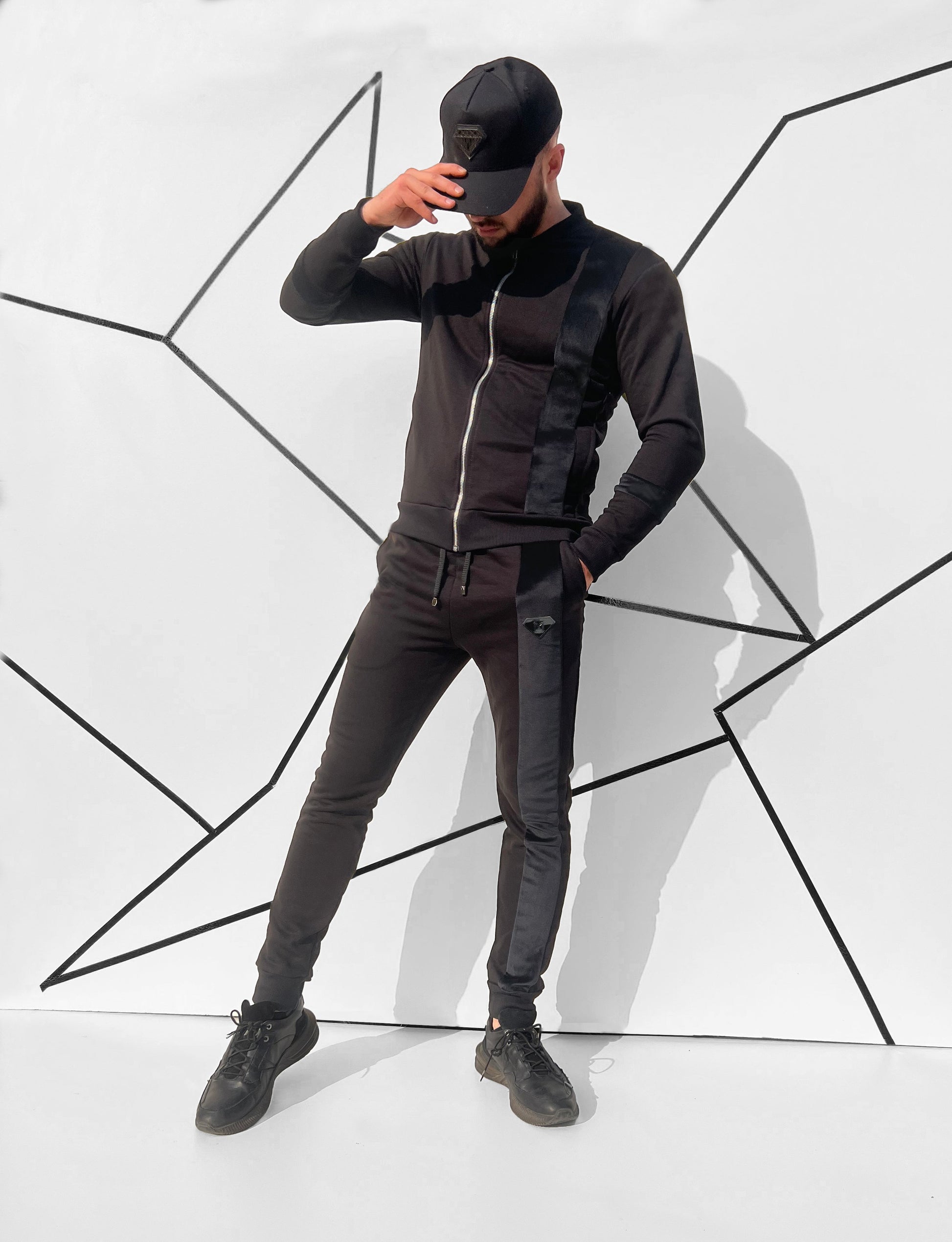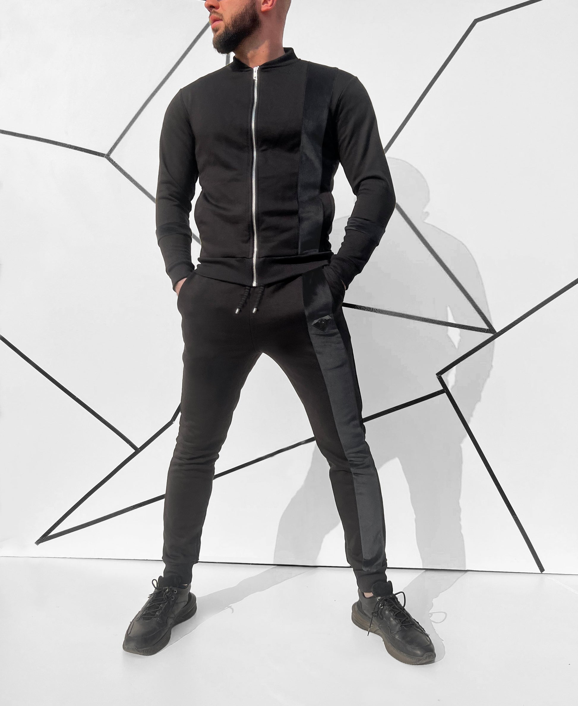 Vyriškas medvilninis laisvalaikio kostiumas su Soft veliūro juostomis
