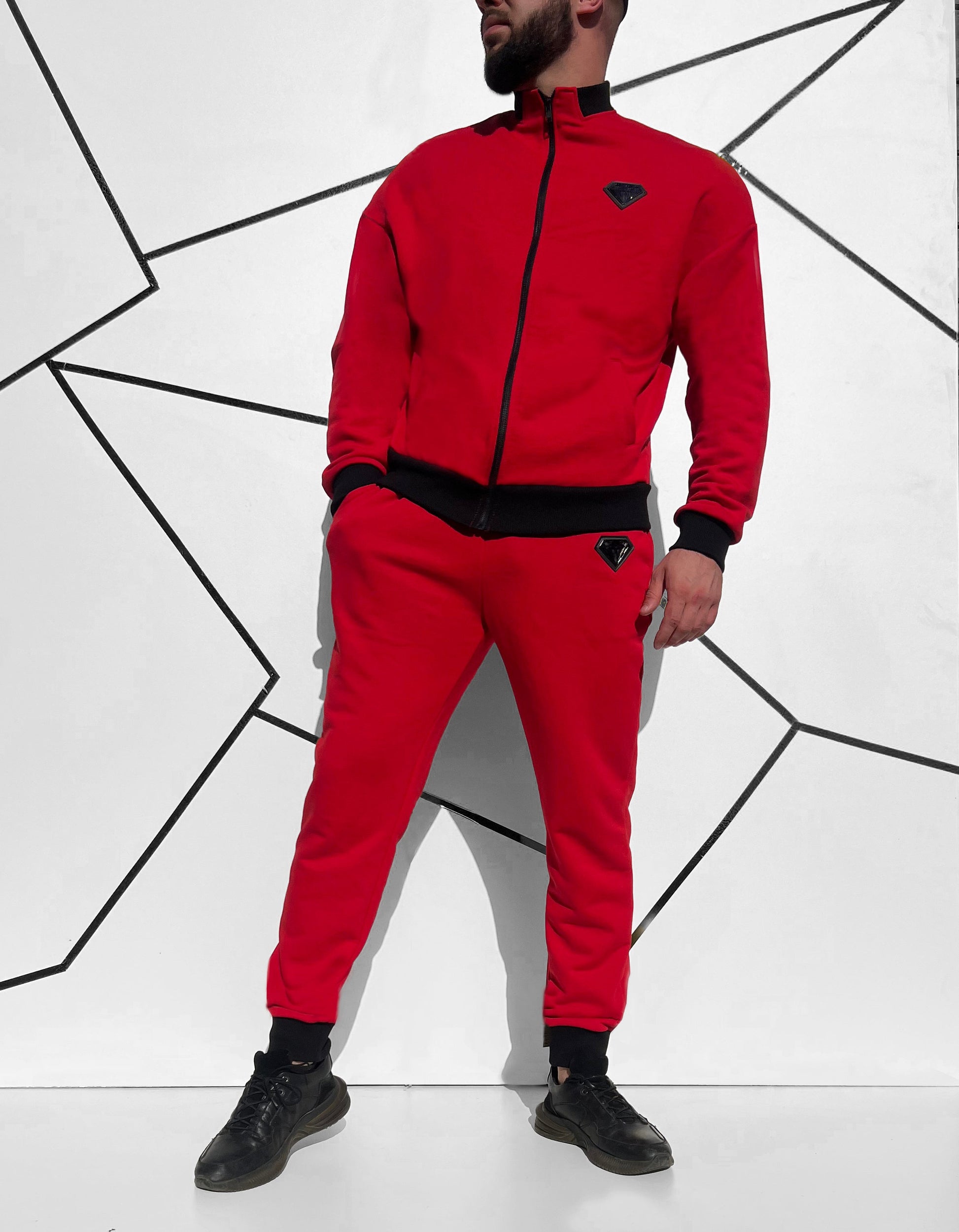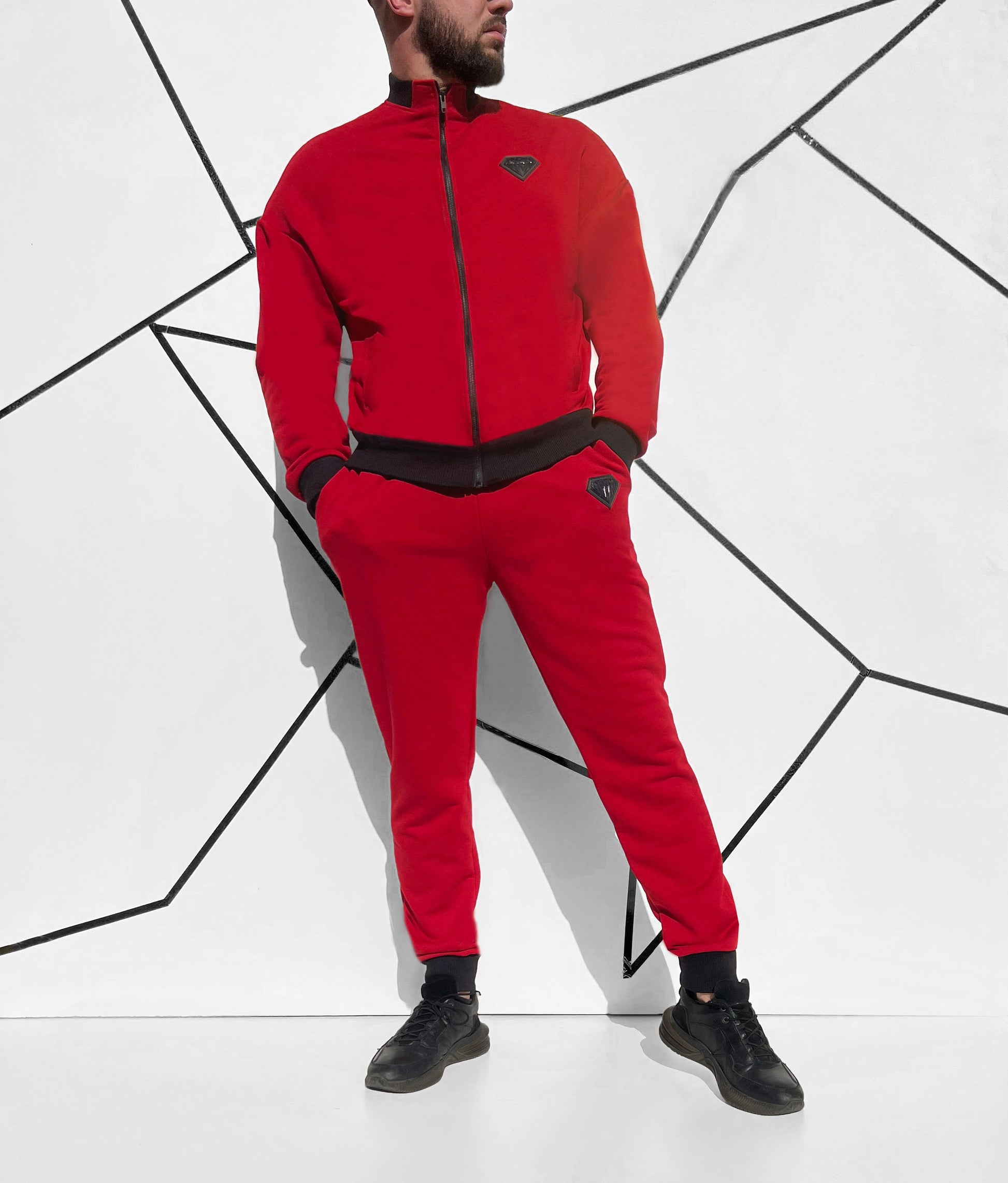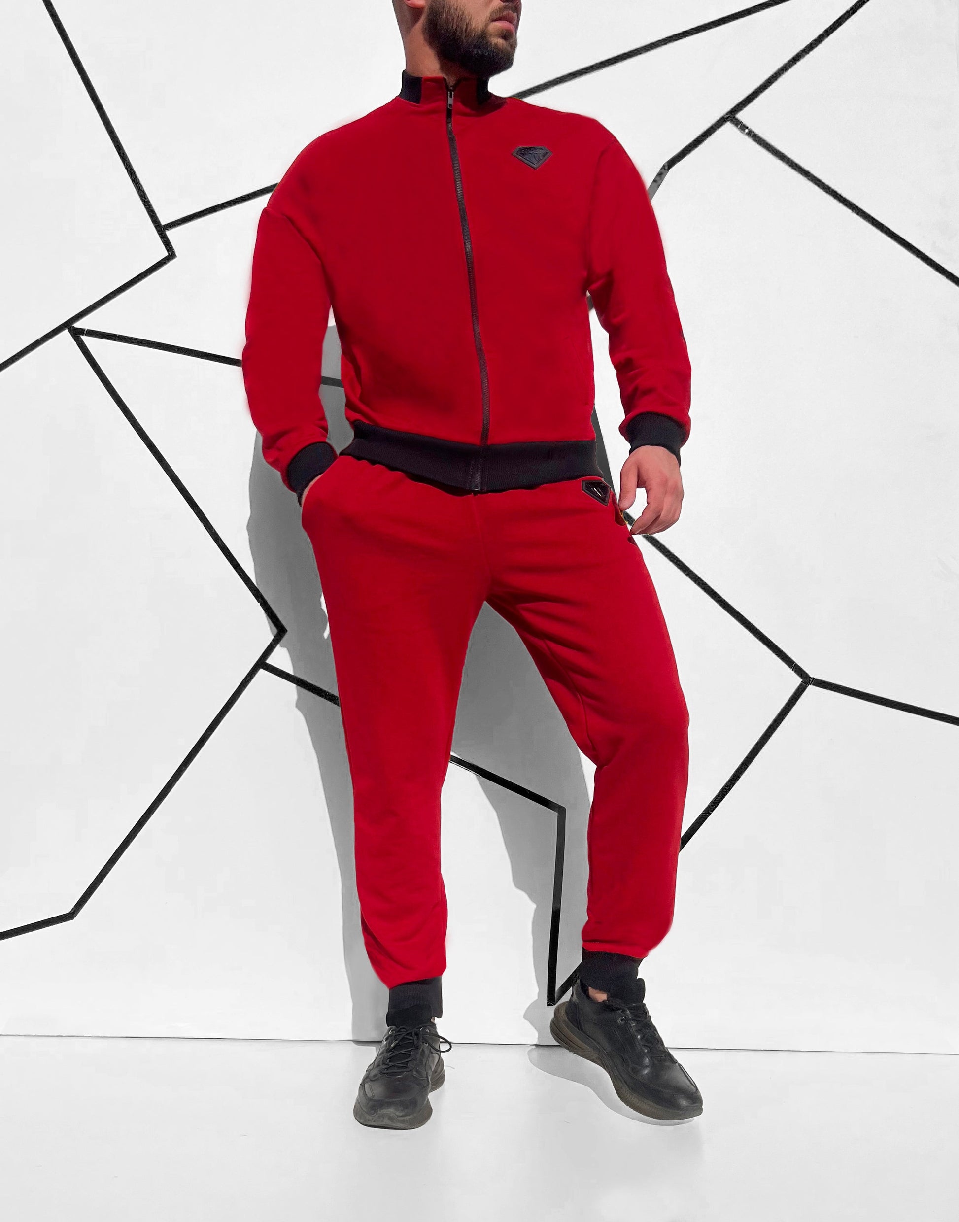 Vyriškas raudonos spalvos medvilninis laisvalaikio kostiumas 'Donveldo'