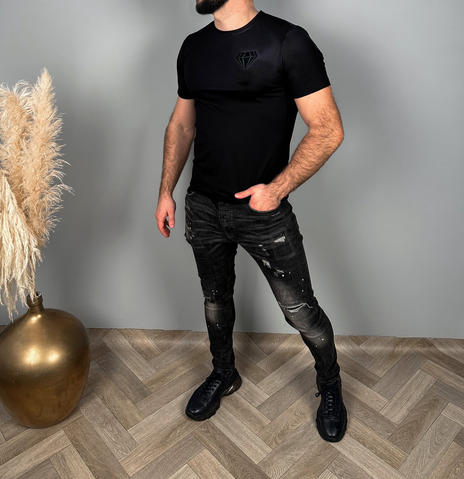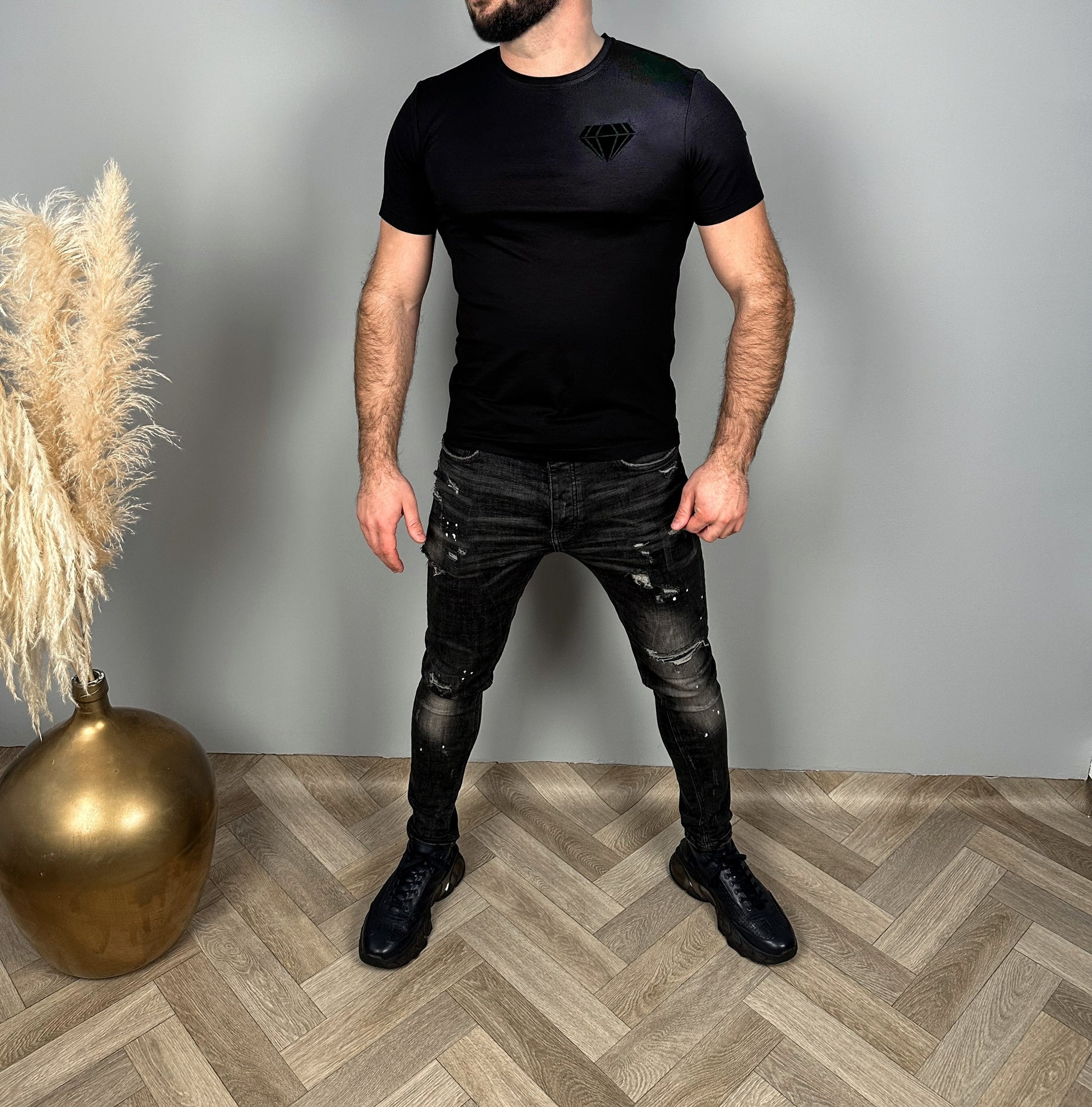 Vyriška maikutė su zomšiniu deimantuku priekyje